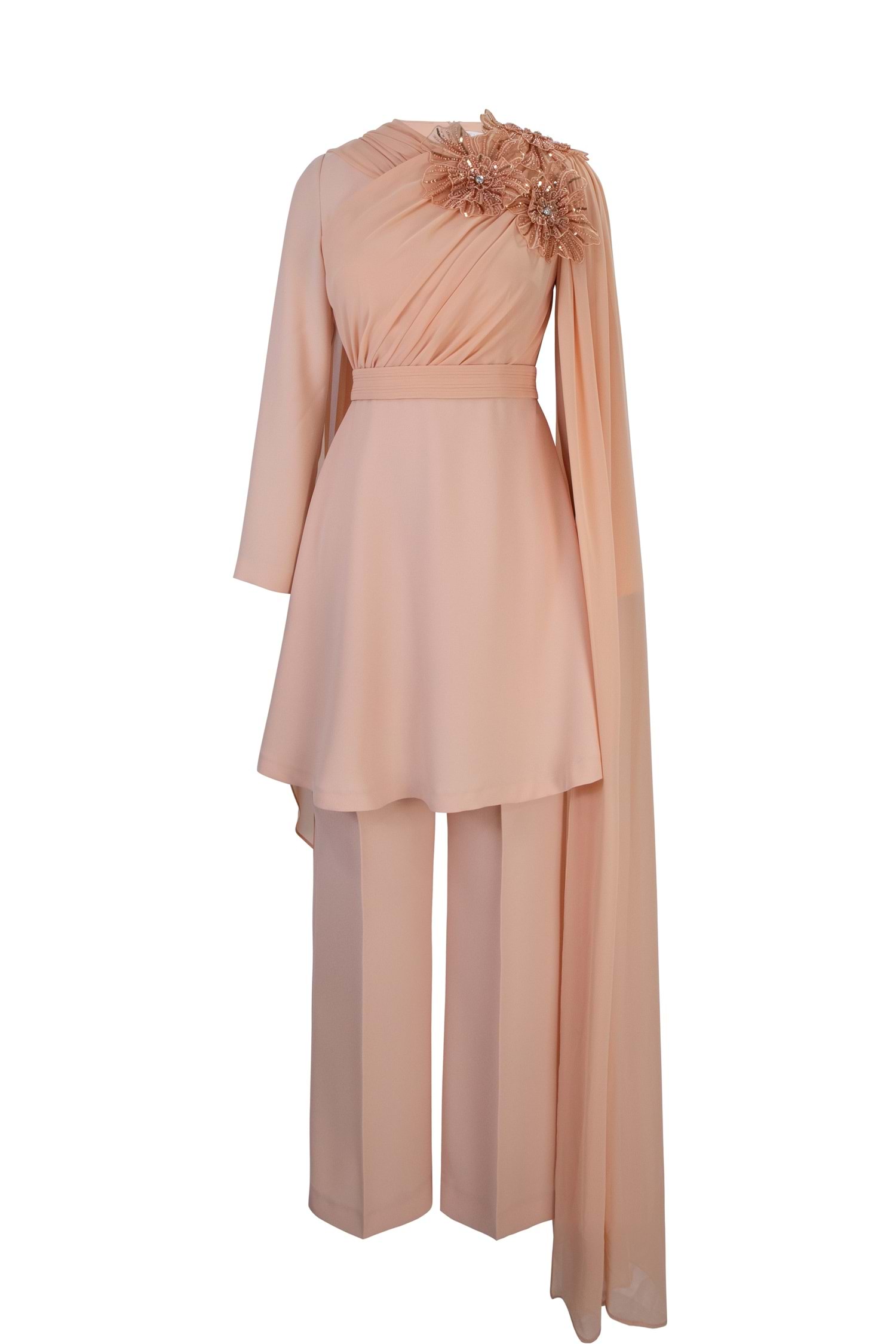 Krep ile şifon kumaşın birbirine en yakıştığı modelimiz sizlerle.