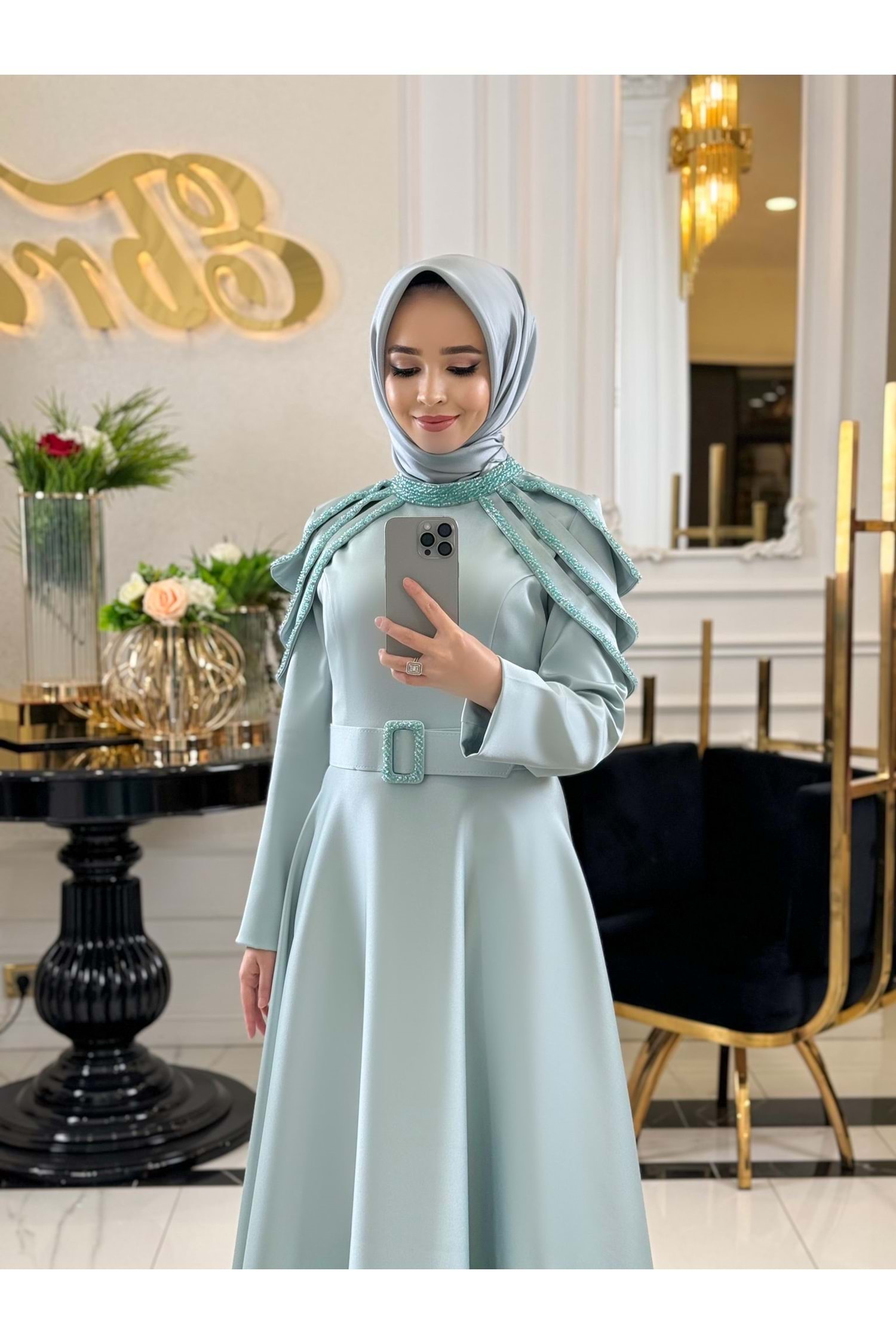 GİSELLE İPEK SATEN ELBİSE